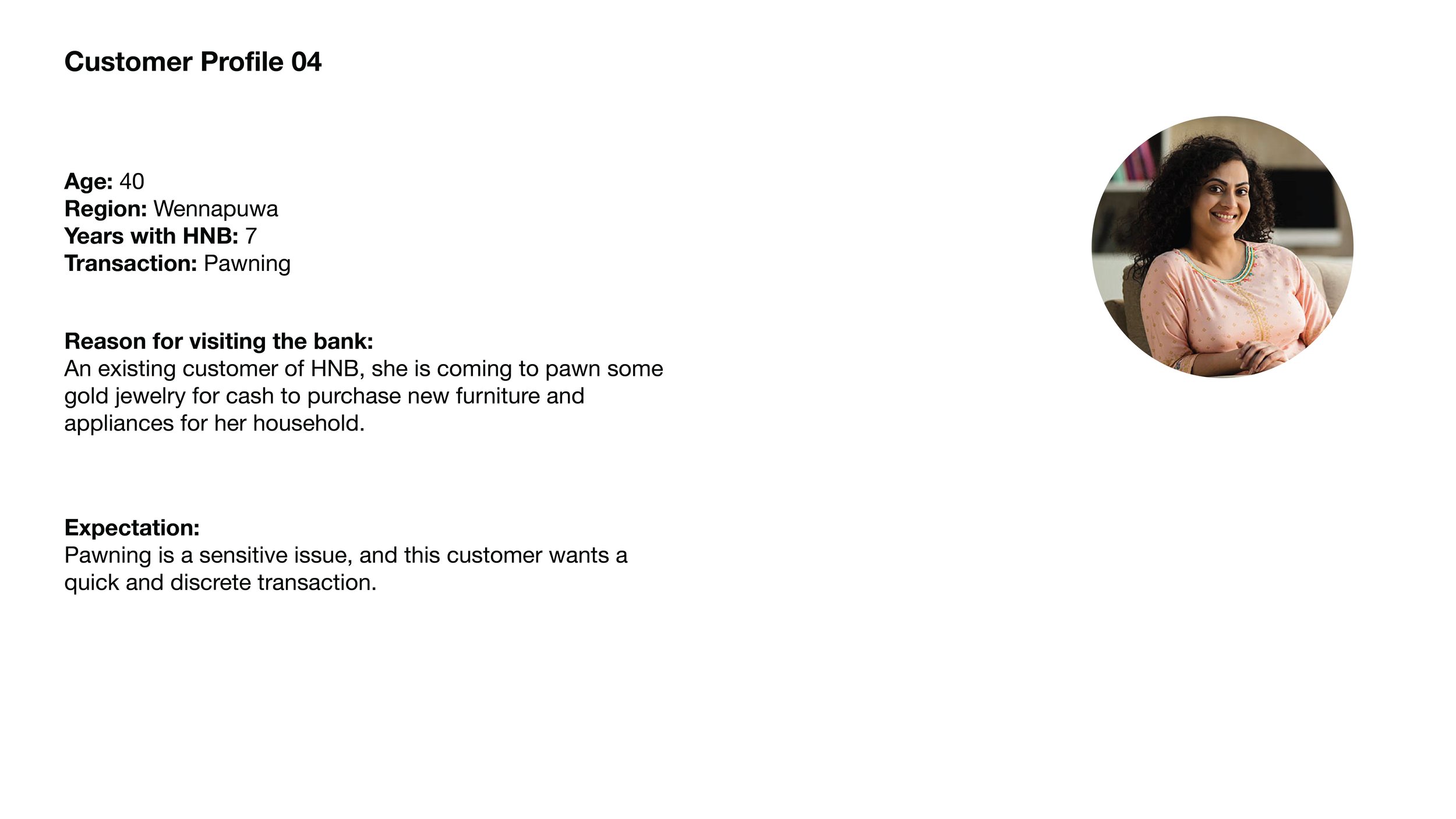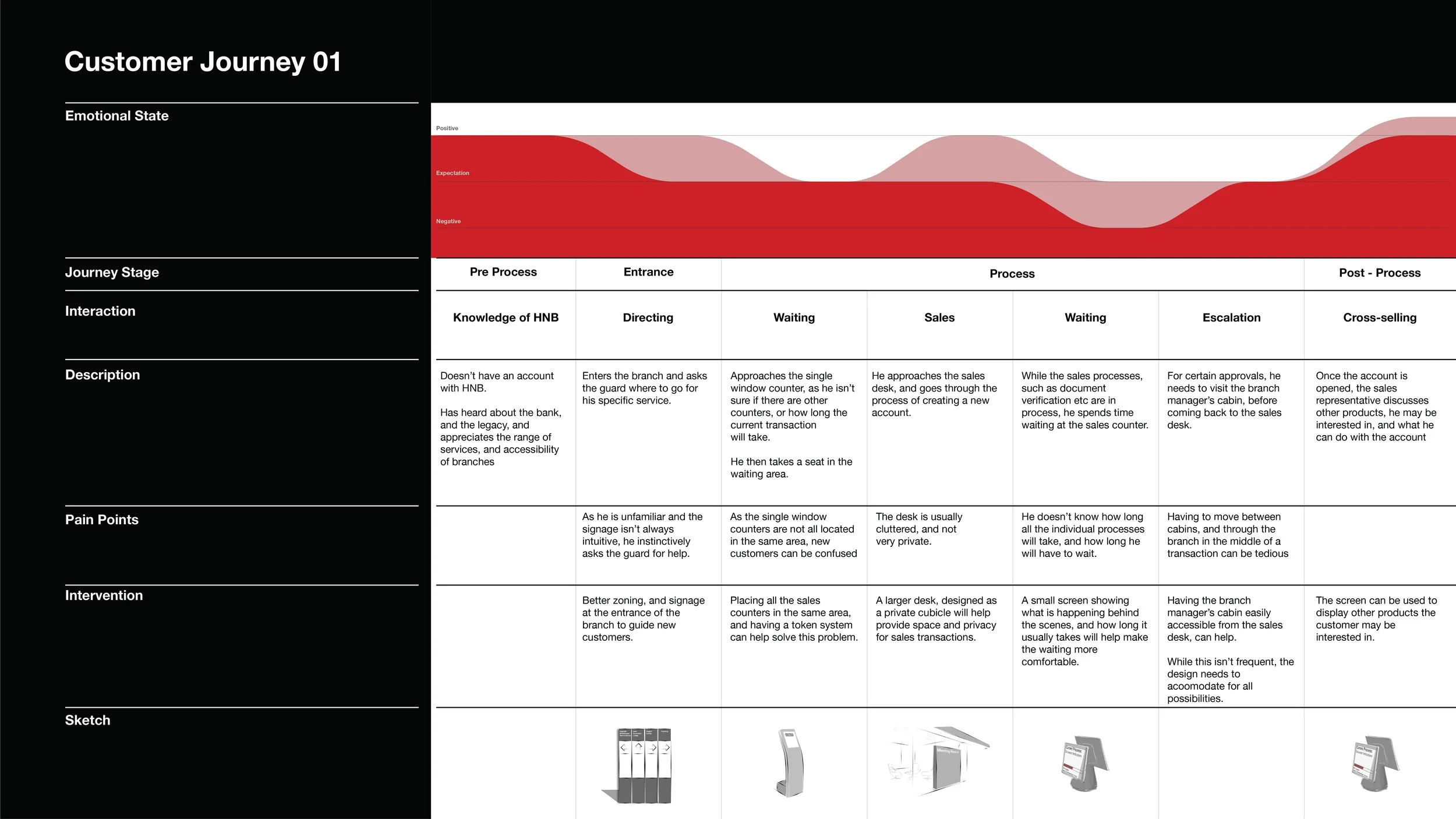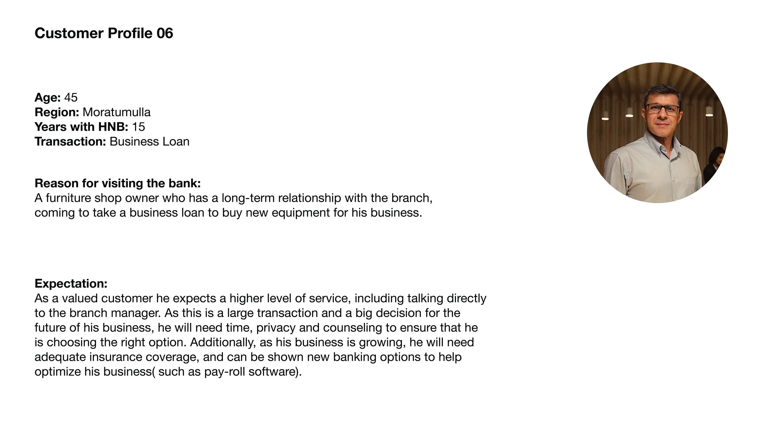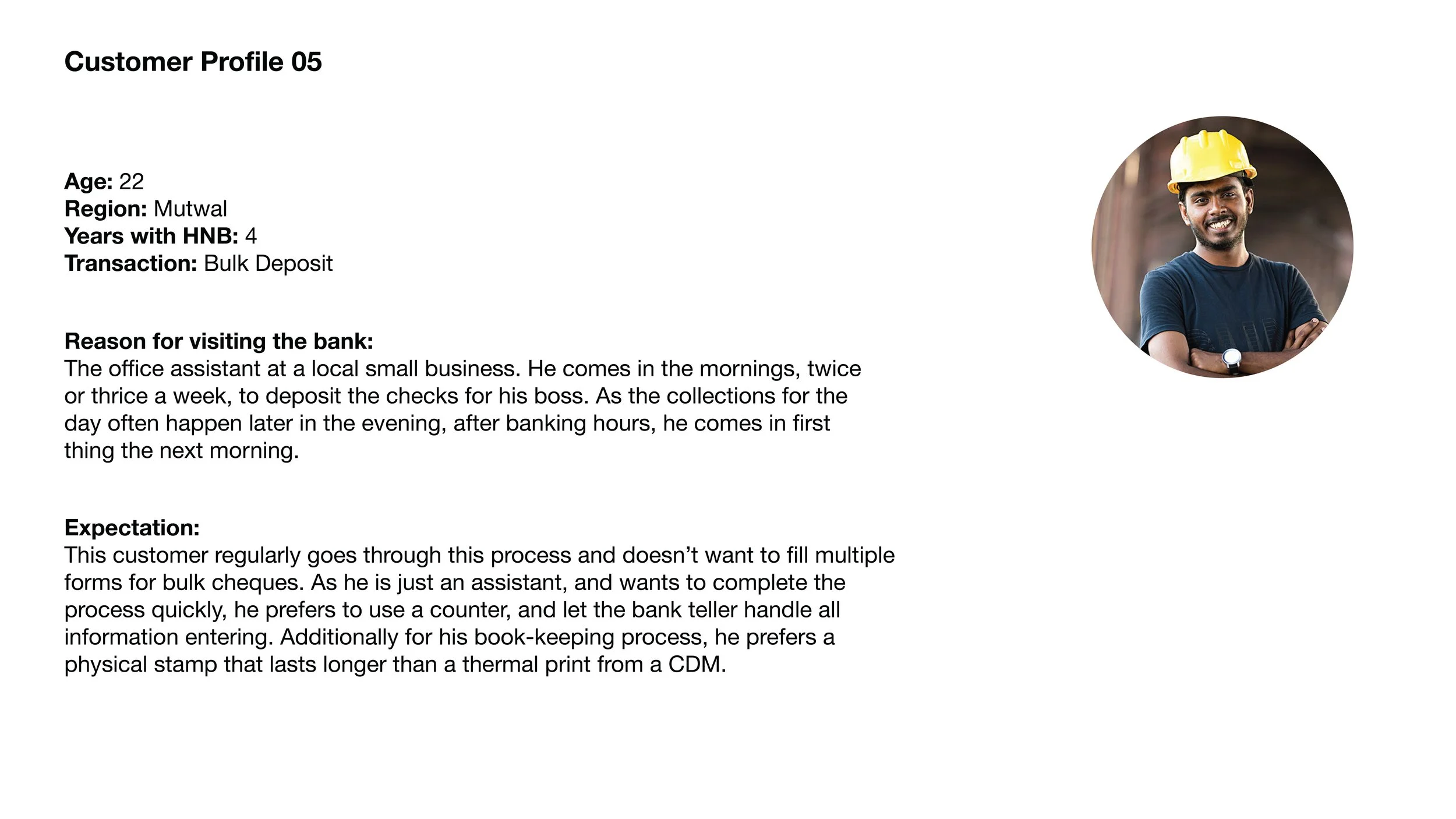 Along with the client, I visited 16 different branches across Sri Lanka, to understand their current approach, what works, as well as the different types of customers and transactions.