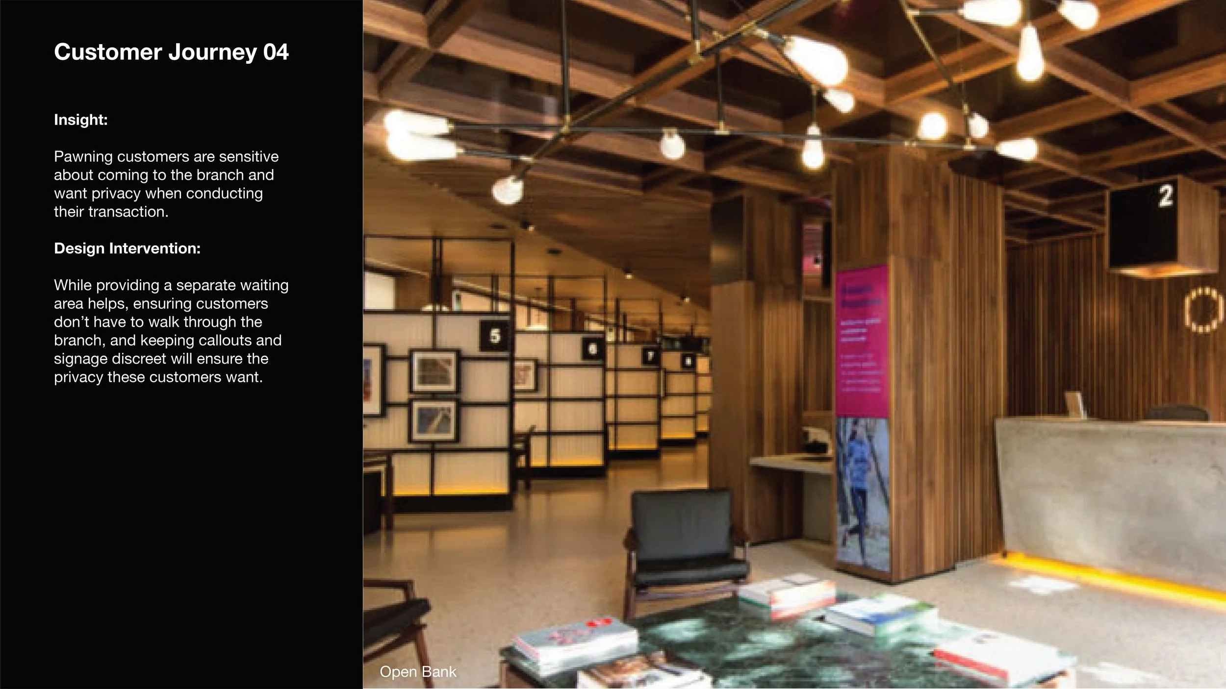 The branch is laid out to ensure that every type of customer is properly catered to, and every customer’s journey flows naturally. Additionally every interaction space is designed for that type of interaction.