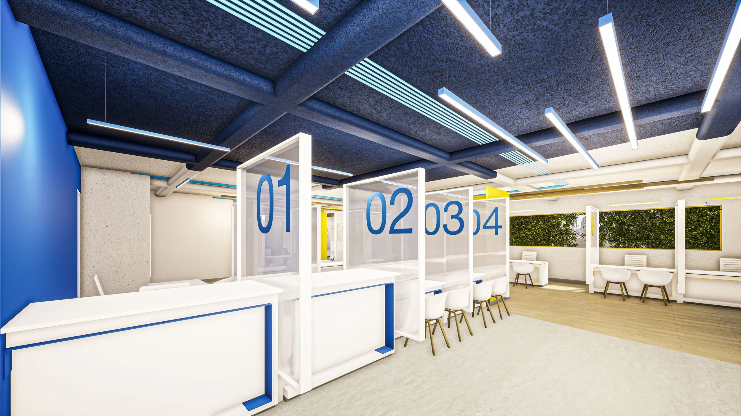 The first half of the space caters to quick transactions. The space has a more commercial feel, with the primary color being the Brand’s Blue. Also included in this space is a digital zone, that remains open 24x7.